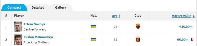 После ухода из Аталанты Виктора Коваленко, который последние сезоны избивался арендами, в Серии А сейчас осталось только два украинца. Стоимость форварда римской Ромы и национальной сборной Украины Артема Довбика не претерпела изменений по сравнению с июньским обновлением – 35 миллионов евро.