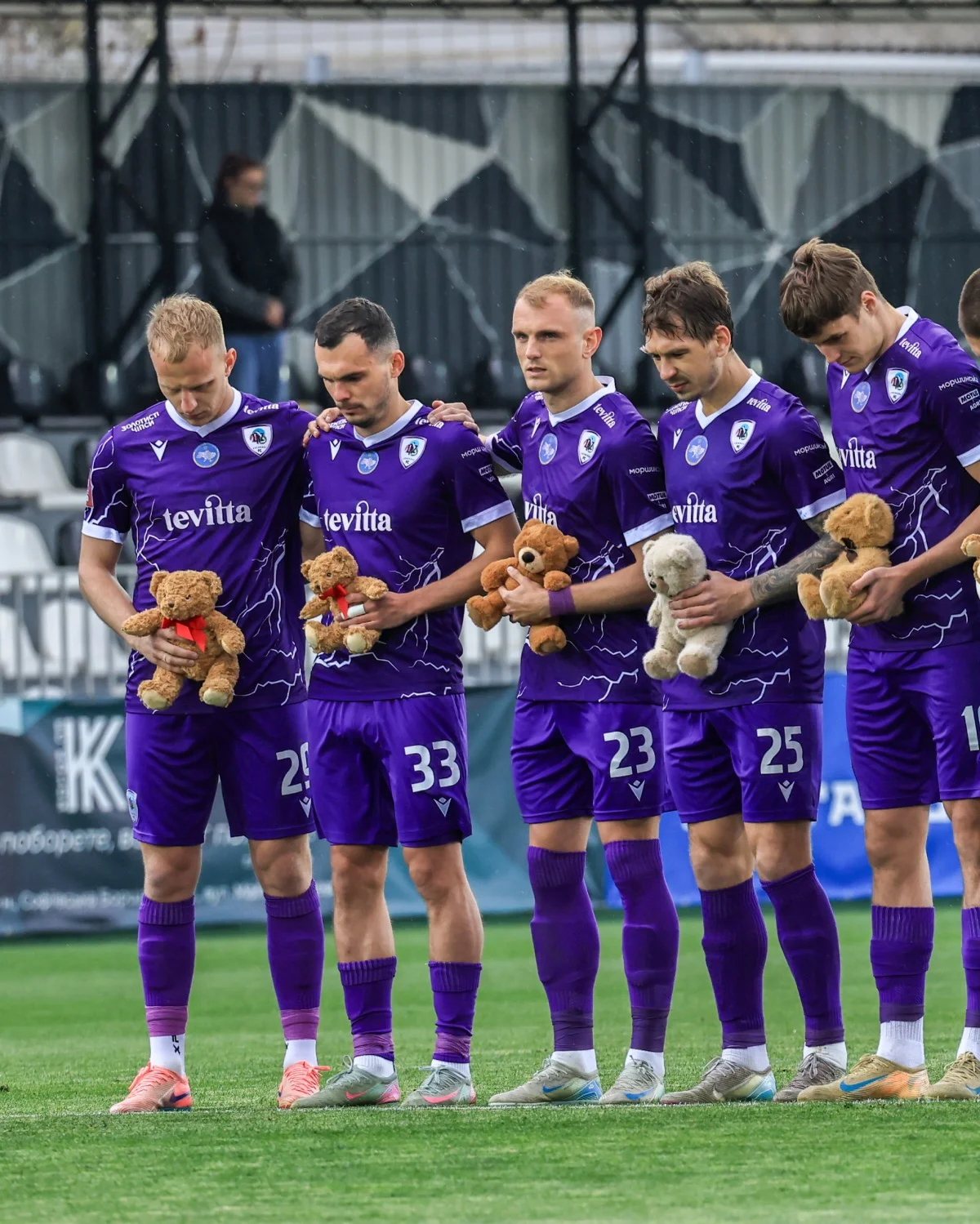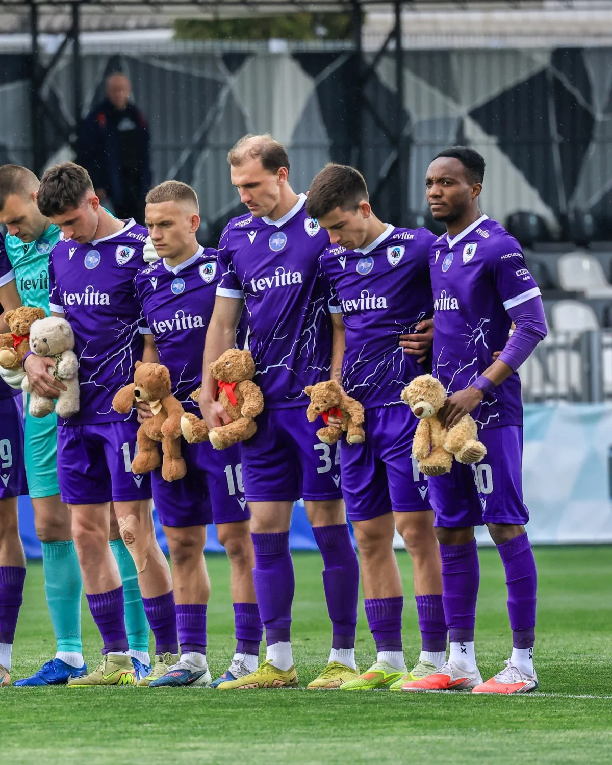 Перед стартом матча 24-го тура УПЛ между Колосом и ЛНЗ состоялась щемящая акция памяти. Футболисты черкасского клуба вышли на поле, держа в руках плюшевые игрушки.