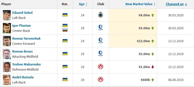 Наибольшего прогресса достиг Соболь – его новая стоимость составляет 4 млн евро, хотя предыдущая была всего 2,5. Пластун же подорожал на 500 тысяч евро – теперь защитник Гента стоит 3 млн евро.
