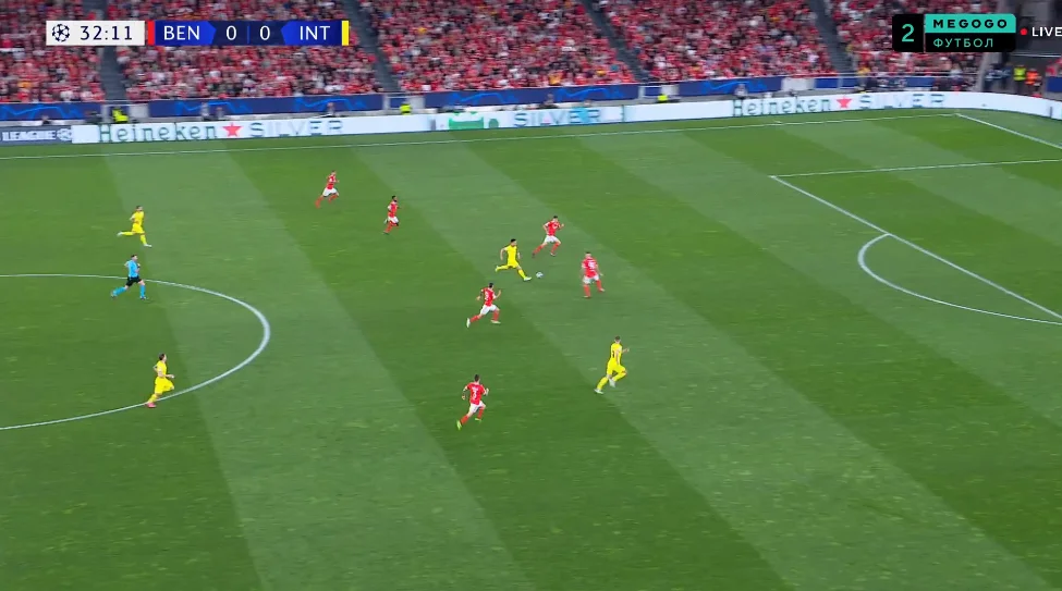 Интер же в завершающей трети поединка стал выглядеть настоящим грандом Серии А. Бенфику начали разрывать в ее сильных аспектах – миланцы легко проходили прессинг лиссабонцев, растягивали компактную схему соперника и сами классно прессинговали в центральной зоне. При этом команда допускала минимальное количество ошибок.