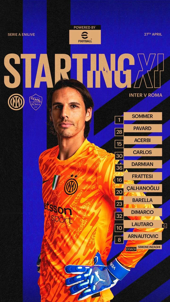 Интер: Зоммер – Дармиан, Павар, Ачерби, Карлос Аугусто, Димарко – Фраттези, Чалхханоглу, Барелла – Арнаутович, Лаутаро
