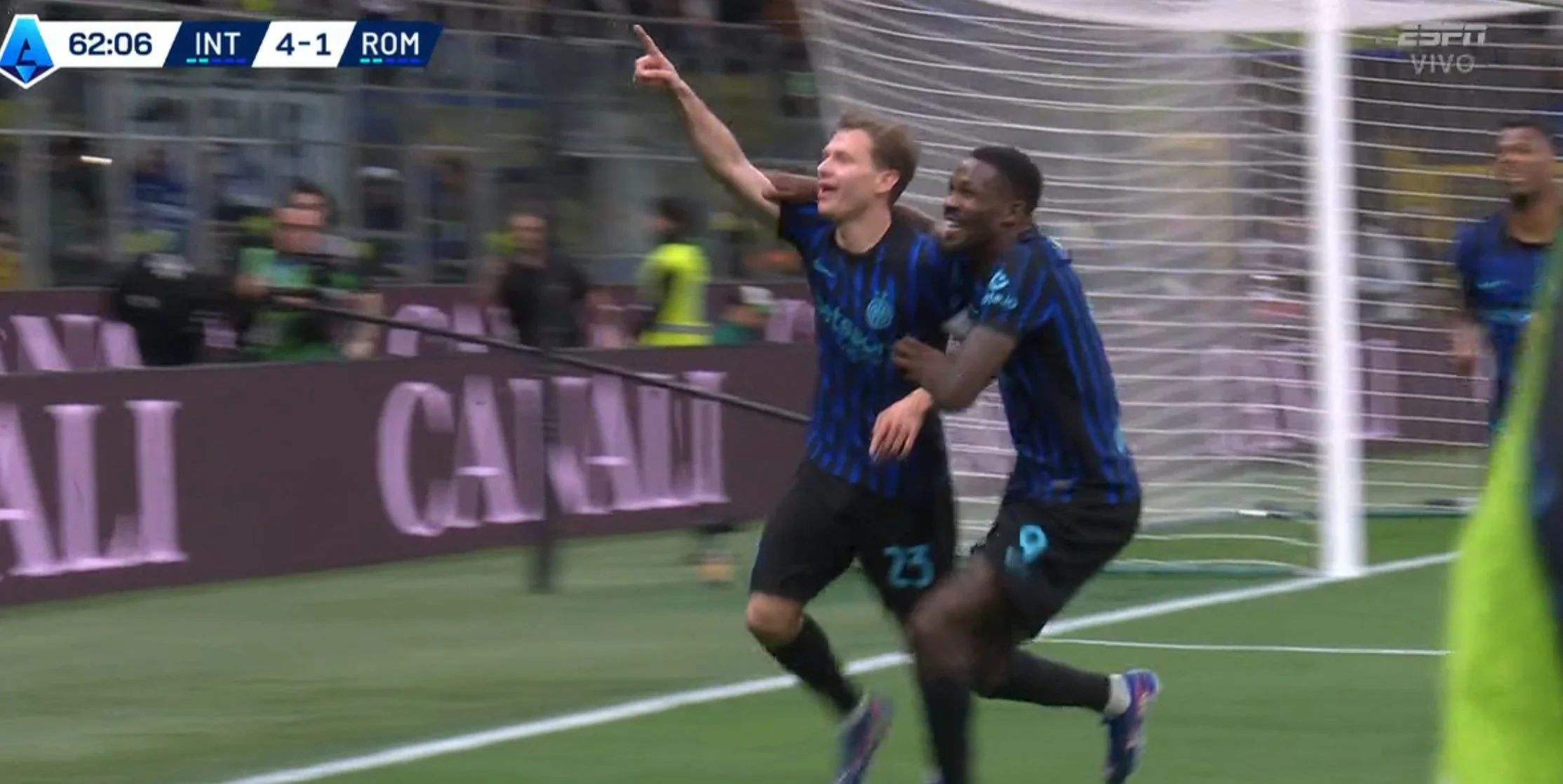 Рома даже смогла забить во второй раз. На 70-й минуте неудачная попытка Малена обыграть Ачерби привела к отскоку в ноги Пеллегрини. Лоренцо, не долго думая, пробил с линии штрафной площади под ближнюю стойку. 5:2! Этот гол стал последним во встрече. Интер отпраздновал победу и оторвался от второй позиции на расстояние в девять очков.