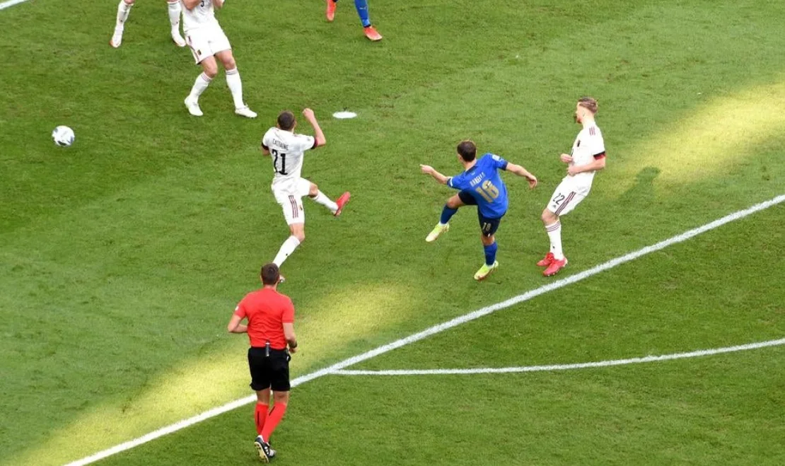Бельгия – не тот соперник, который способен заставить Италию отойти от стиля, который проповедует Роберто Манчини. Хозяева Альянц Стэдиум в Турине с первых секунд забрали мяч под свой контроль и зажали хозяев вблизи правого угла поля. Ди Лоренцо при поддержке Берарди и Бареллы классно накрывали защитников, но и сами не смогли прорваться к штрафной. Опасность возниклау – Алдервейрельд в отчаянном прыжке заблокировал. После розыгрыша углового снова бил Кьеза. На этот раз значительно выше.