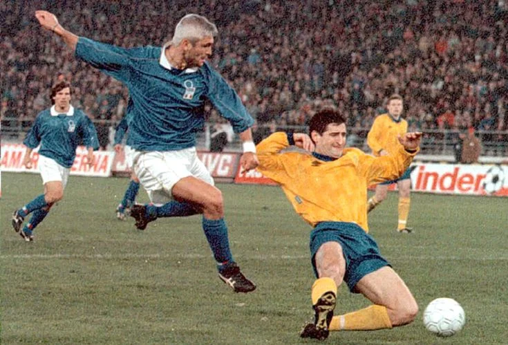 Впервые пути "сине-желтых" и "адзурри" пересеклись весной 1995 года в рамках отбора к Евро-96. Итальянская сборная под руководством гения тактики Арриго Сакки приехала экзаменировать команду Украины на киевском Республиканском. Навязать борьбу сборная будущего президента ФФУ Анатолия Конькова не смогла. Украинцы пропустили дважды еще до перерыва: в ворота Тяпушкина забивали Аттилио Ломбардо и Джанфранко Дзола. Аргументов в ответ атака в необычном составе опытного Леоненко и юного Шевченко предоставить не смогла.