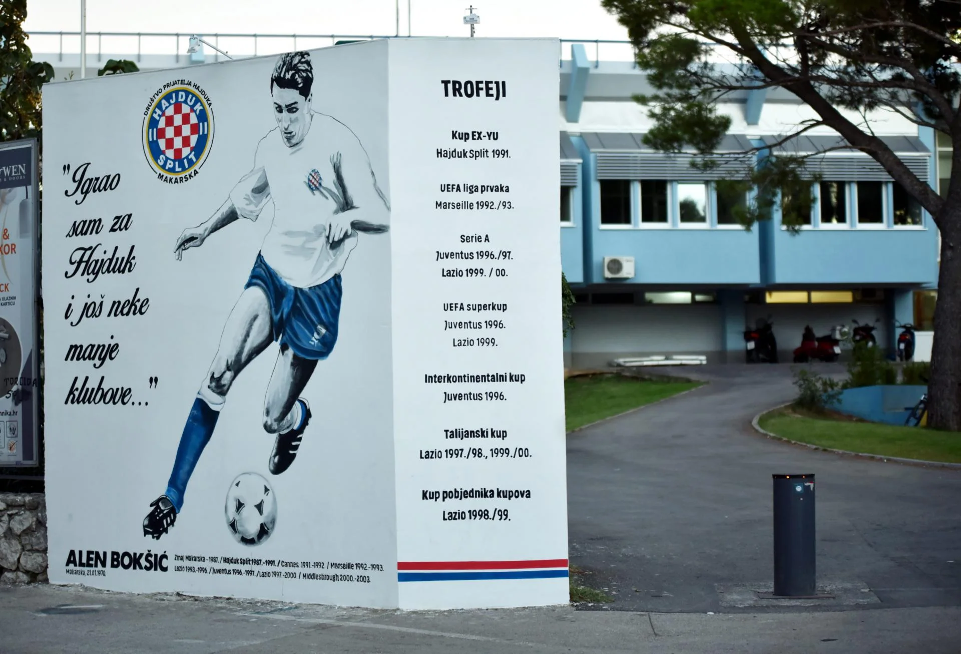 В родном городке его знает каждый. К тому же о великом земляке жителям Макарской напоминает этот мурал с изображением Бокшича и перечнем его трофеев.