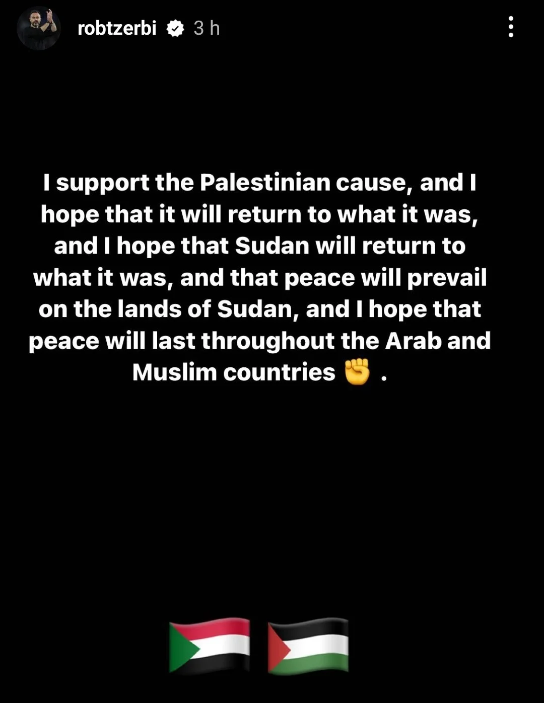 "Я поддерживаю дело палестинцев и надеюсь, что все вернется на круги своя. Я надеюсь, что Судан вернется к тому, чем он был, и что на землях Судана воцарится мир. Что мир сохранится в арабских и мусульманских странах", – говорится в посте.
