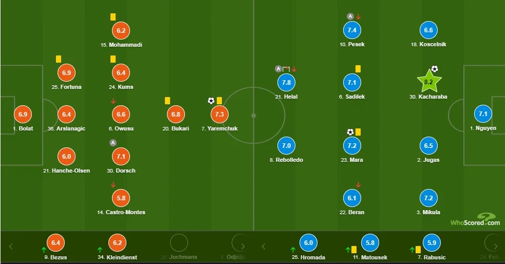 По оценкам Whoscored, Роман Яремчук стал лучшим в составе Гента с показателем 7,3. К слову, форвард отметился голом, но это не спасло Гент от 5-го фиаско в ЛЕ. В составе соперника самим эффективным стал другой украинец – Тарас Качараба, который забил второй мяч Слована. Более того, его признали лучшим игроком еврокубковой дуэли (8,2).
