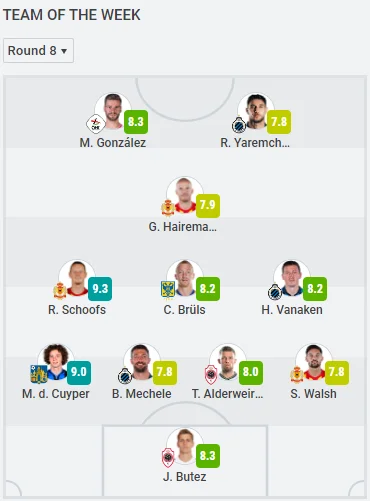 Украинский форвард Роман Яремчук попал в число одиннадцати лучших игроков 8-го тура чемпионата Бельгии по версии SofaScore.