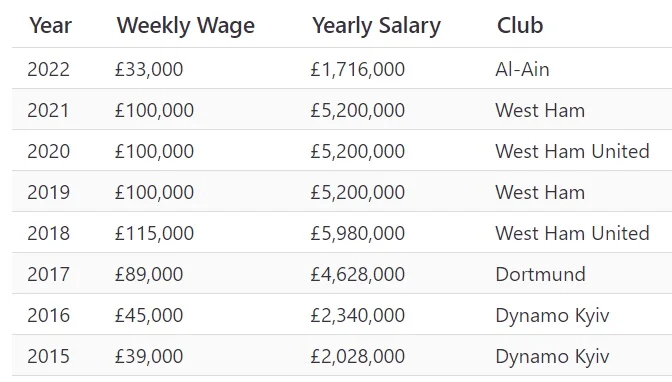 Ради того, чтобы поработать под руководством Сергея Реброва, 33-летний украинец пошел на снижение зарплаты в несколько раз. В Аль-Айне Ярмоленко получает около 1,7 млн фунтов за сезон, сообщает Salary sport.