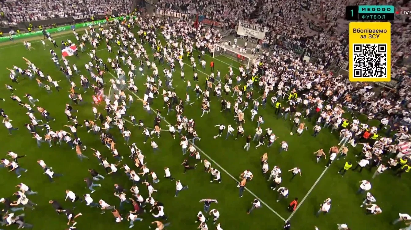 Айнтрахт выходит в финал, который состоится 18 мая в Севилье. Там "орлы" сыграют против Рейнджерс. Франкфуртские болельщики после финального свистка рванули на газон к своим героям.