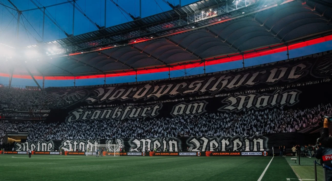 Первого удара пришлось ждать 20 минут. Однако болельщики не скучали. Фаны Айнтрахта снова подарили шикарную атмосферу.
