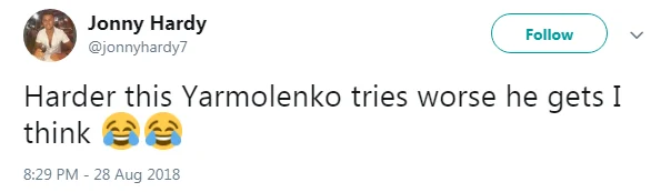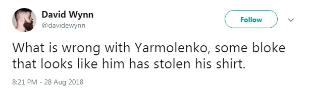 В то же время появились негативные и ироничные комментарии, как этот: "Что не так с Ярмоленко. Какой-то тип, похожий на него, украл его футболку".