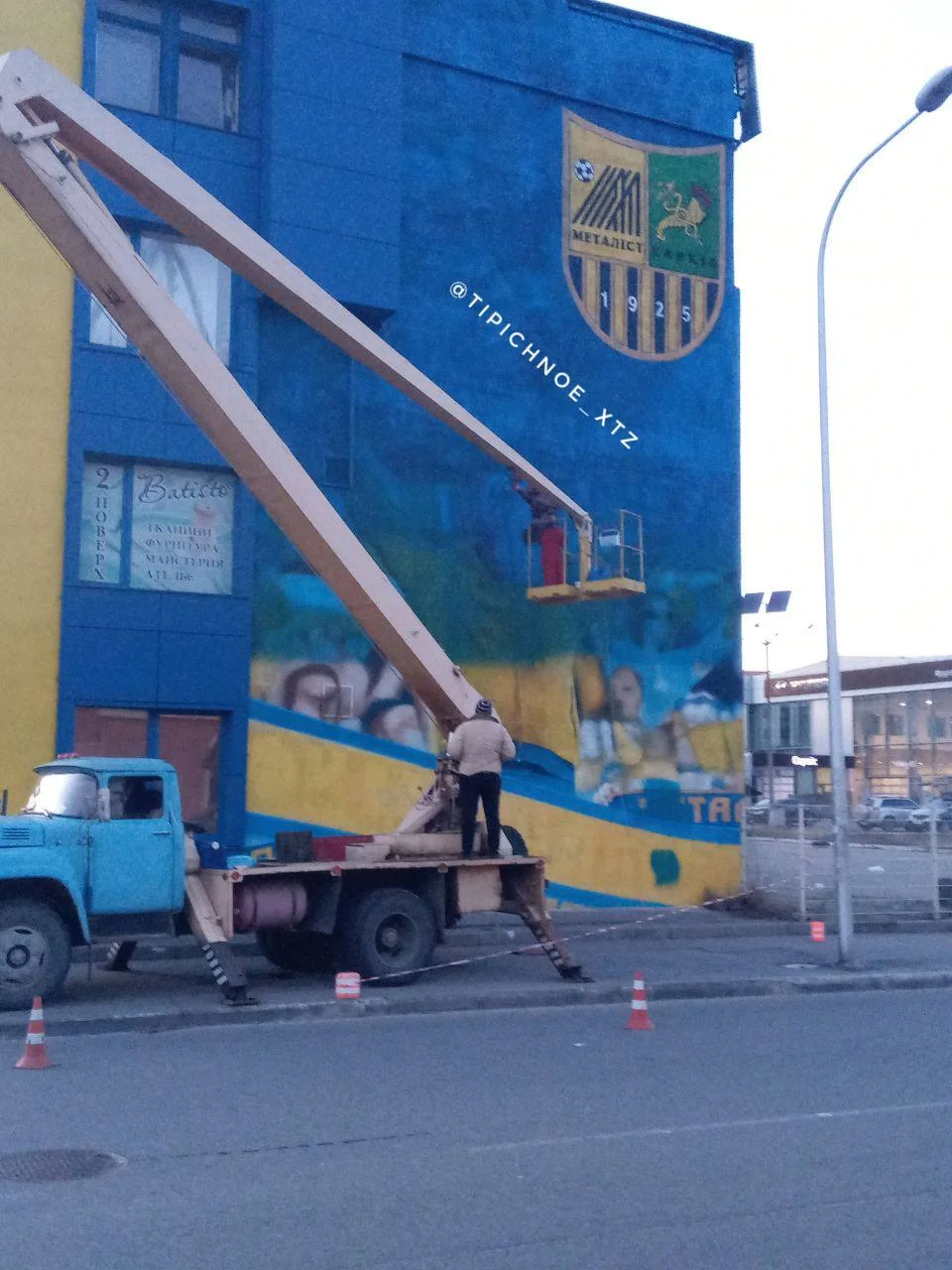 Ярославский "исчез" с мурала возле стадиона Металлиста – фото дня