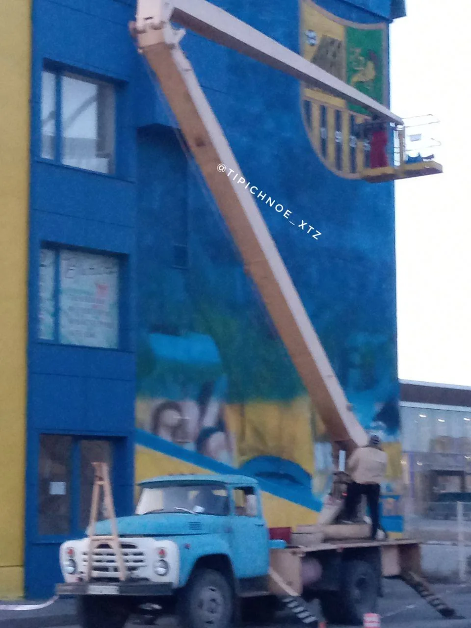 Теперь же его изображение полностью зарисовали синей краской, сообщает Telegram-канал ТипичнОЕ ХТЗ Харьков.