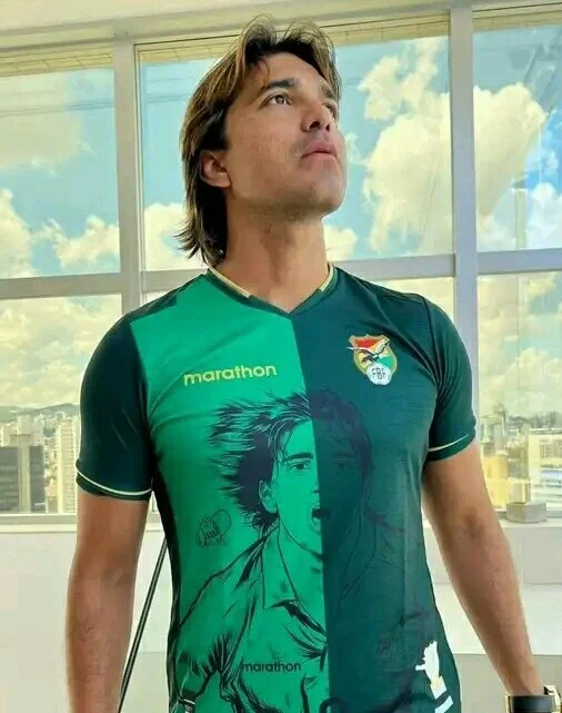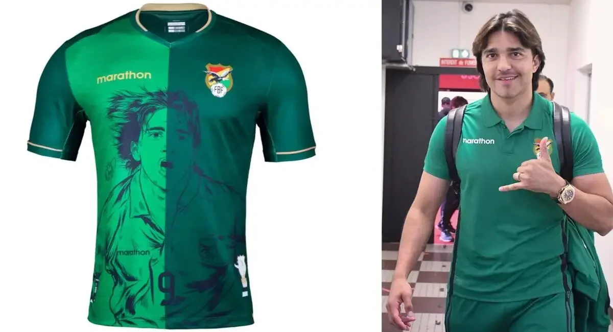 Футболка – зеленого цвета, как и форма боливийской команды: спереди на ней изображен сам Марсело, а на обороте красуется цифра девять и своеобразный список, указывающий количество голов, забитых нападающим за каждую команду.