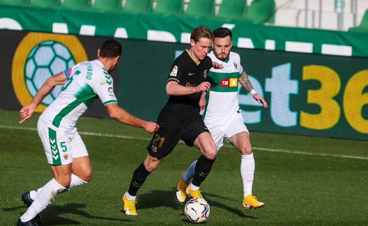 Барселона привычно имела достаточно моментов, но большинство из них упускала. Счет удалось открыть только на 39 минуте. Защитник Эльче неудачно прервал подачу с левого фланга, а де Йонг просто добил мяч на линии ворот.