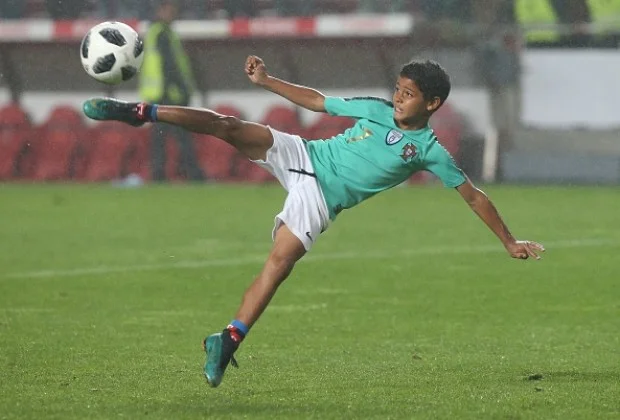 Криштиану Роналду видит свои черты в юном и перспективном. Криштиану-младший может стать преемником великого бомбардира, который этим летом перешел в Ювентус.
