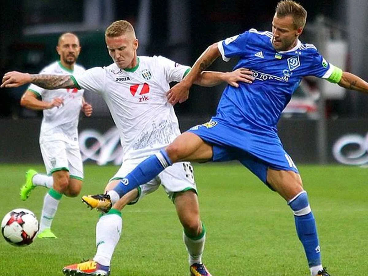 Юрий Ткачук в борьбе против Ярмоленко / фото fckarpaty.lviv.ua