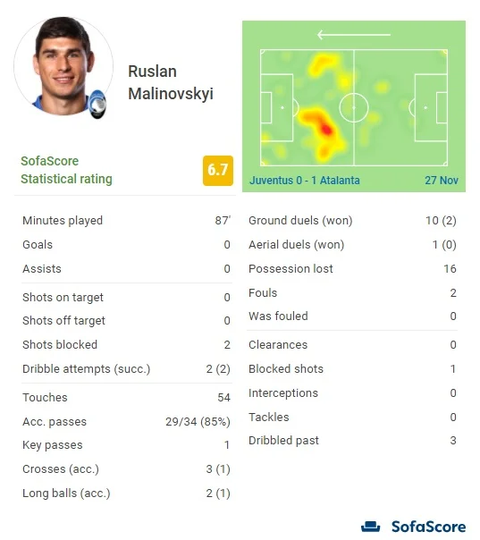 За матч против Юве Руслан получил посредственные оценки – 6.7 от SofaScore и 6.3 от WhoScored (один из самых низких баллов в поединке среди игроков стартовой обоймы обеих команд). Местные издания Бергамо тоже считают украинца одним из худших.