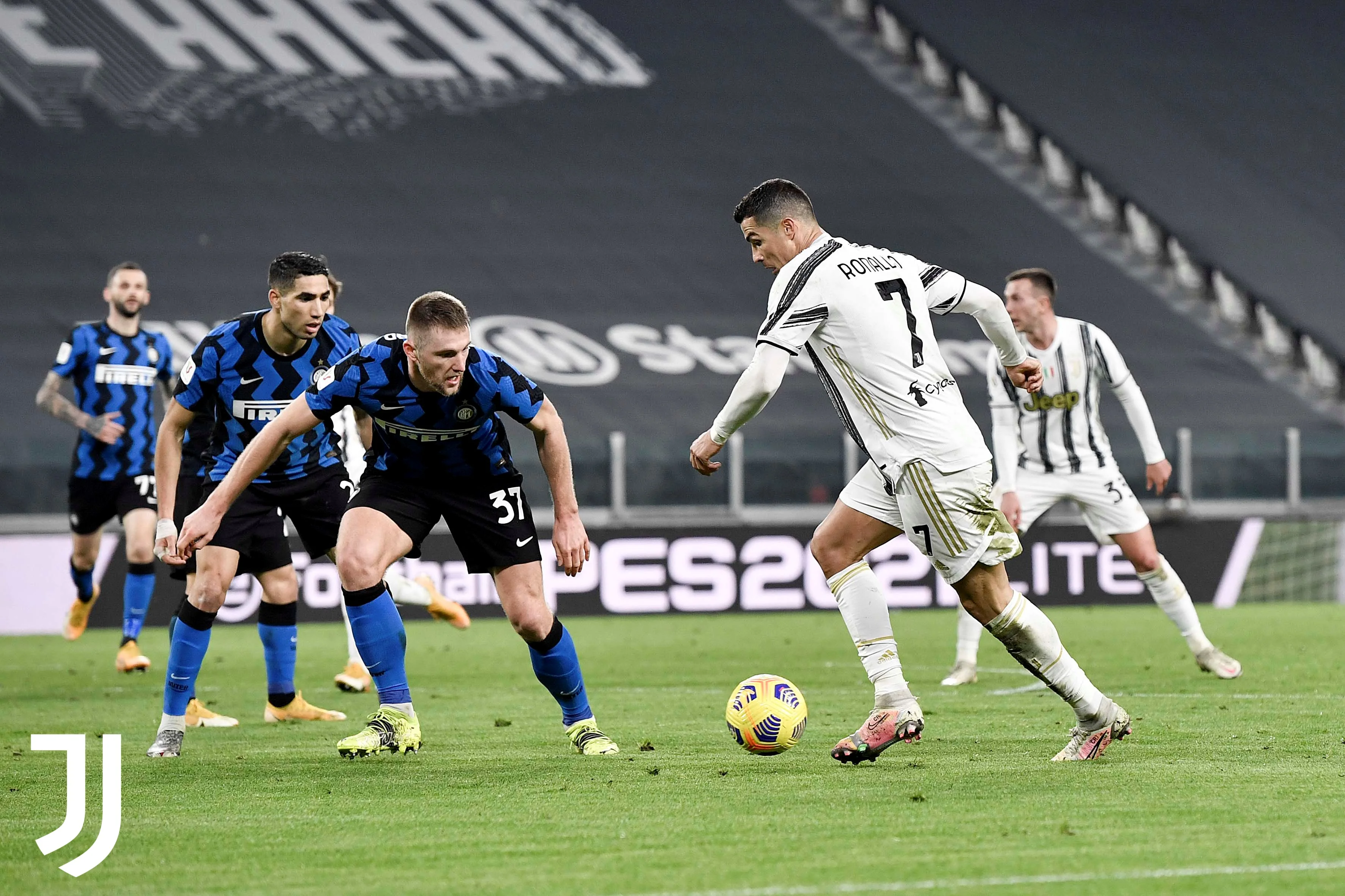 Второй тайм стартовал в том же русле. За первые двадцать минут команды провели всего по одному реально голевому моменту – Хакими на 53-й минуте выстрелил над девяткой с правого края штрафной, а Роналду завершил контрвыпад туринцев дальним ударом мимо ближнего угла. Кроме того, был один случайный полумомент – это Лаутаро в результате удачного отскока мог выходить один на один с Буффоном, но не успел к мячу.