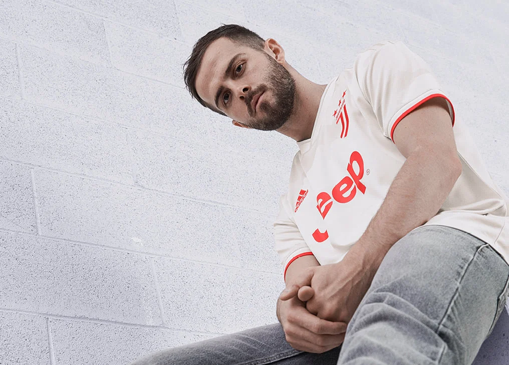Основным цветом формы стал белый, что стало некоторой неожиданностью. Ювентус обычно не использовал такой оттенок, поскольку он присутствует в их основном комплекте. Также футболку украсили элементы яркого красного цвета на рукавах и эмблемах клуба и спонсоров.