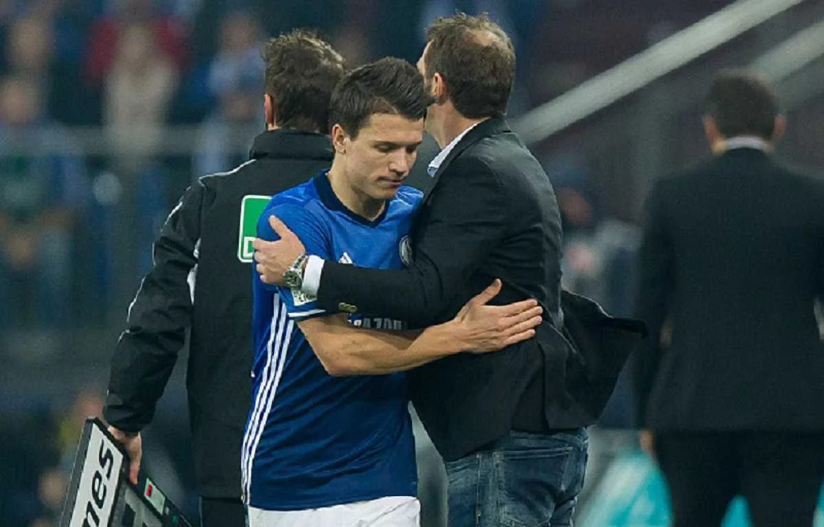 Как Коноплянка с главным тренером отрабатывает удары на тренировках "Шальке"