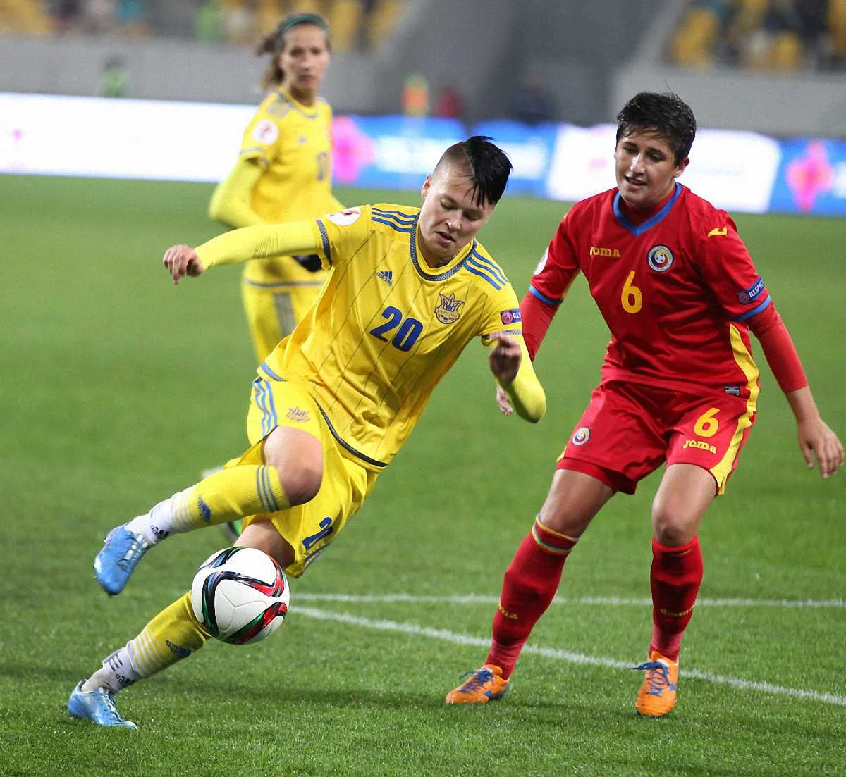 Национальная женская сборная команда Украины начала квалификацию чемпионата Европы 2017 года. В дебютной встрече "сине-желтые" 22 октября на стадионе "Арена Львов" сыграли вничью с командой Румынии - 2:2. Мячи у нас забивали Ия Андрущак (№15) и Татьяна Романенко (№11). Матч для "сине-желтых" стал юбилейным сотым в рамках чемпионатов мира и Европы.