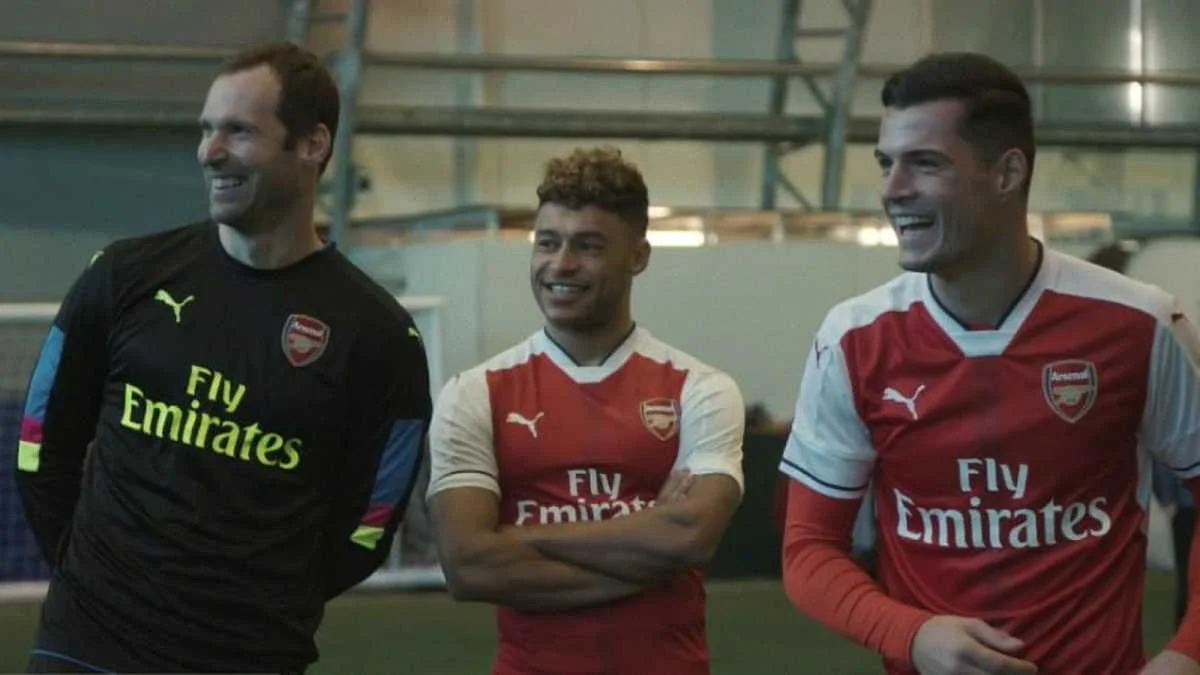 Футболисты "Арсенала" Петр Чех, Гранит Джака и Алекс Окслейд-Чемберлен приняли участие в веселом соревновании.