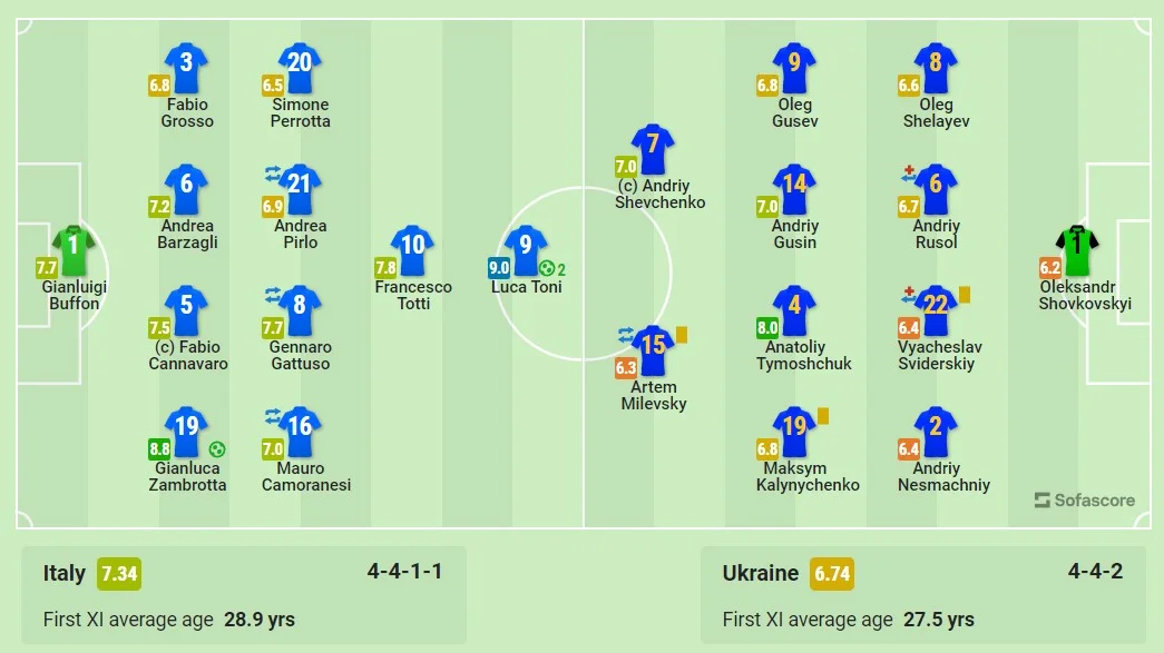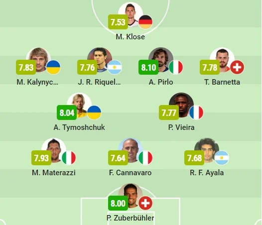 Тимощук и Калиниченко попали в символическую сборную ЧМ-2006 на основе оценок SofaScore. Рядом с ними легендарные Пирло, Виейра, Каннаваро и Клозе, которые находились и в официальной сборной немецкого Мундиаля.