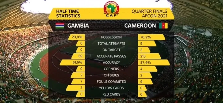 Серьезно добавил Камерун ближе к перерыву – куда активнее атаковала команда, чем в матче против Комор. Но голов в первом тайме это не принесло – 0:0 после 45-ти минут с серьезным преимуществом хозяев. Гамбия ни разу не пробила даже в направлении ворот Онана.