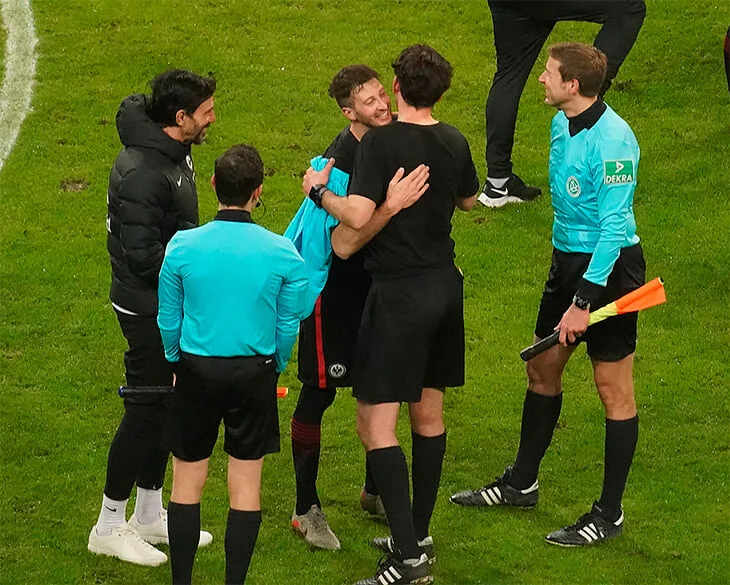 Капитан Айнтрахта завершил карьеру ради сына – прощальный матч завершился неожиданным обменом футболками с арбитром