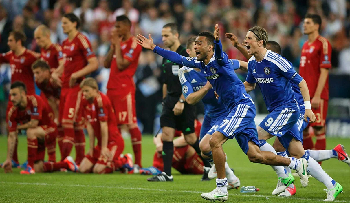Лотерея началась удачно для Тимощука и Ко – Лам реализовал свой удар, а Мата проиграл дуэль Нойеру. Гомес и голкипер Баварии тоже пробили точно, как и Давид Луис с Фрэнком Лэмпардом. А вот Олич не сумел переиграть Чеха, после чего Коул отправил мяч в сетку. Последним у Баварии бил Бастиан Швайнштайгер. Медленный разбег, удар... штанга!!! На стадионе воцарилась гробовая тишина, за исключением секторов с болельщиками Челси. Этот промах оказался роковым – Дидье Дрогба пробил точно и принес Челси первый Кубок чемпионов в истории клуба.