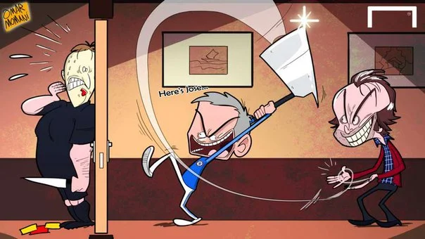 Карикатурист Омар Момани изобразил инцидент Жозе Моуринью с арбитрами матча "Вест Хэм" - "Челси", использовав сюжет из фильма "Сияние".