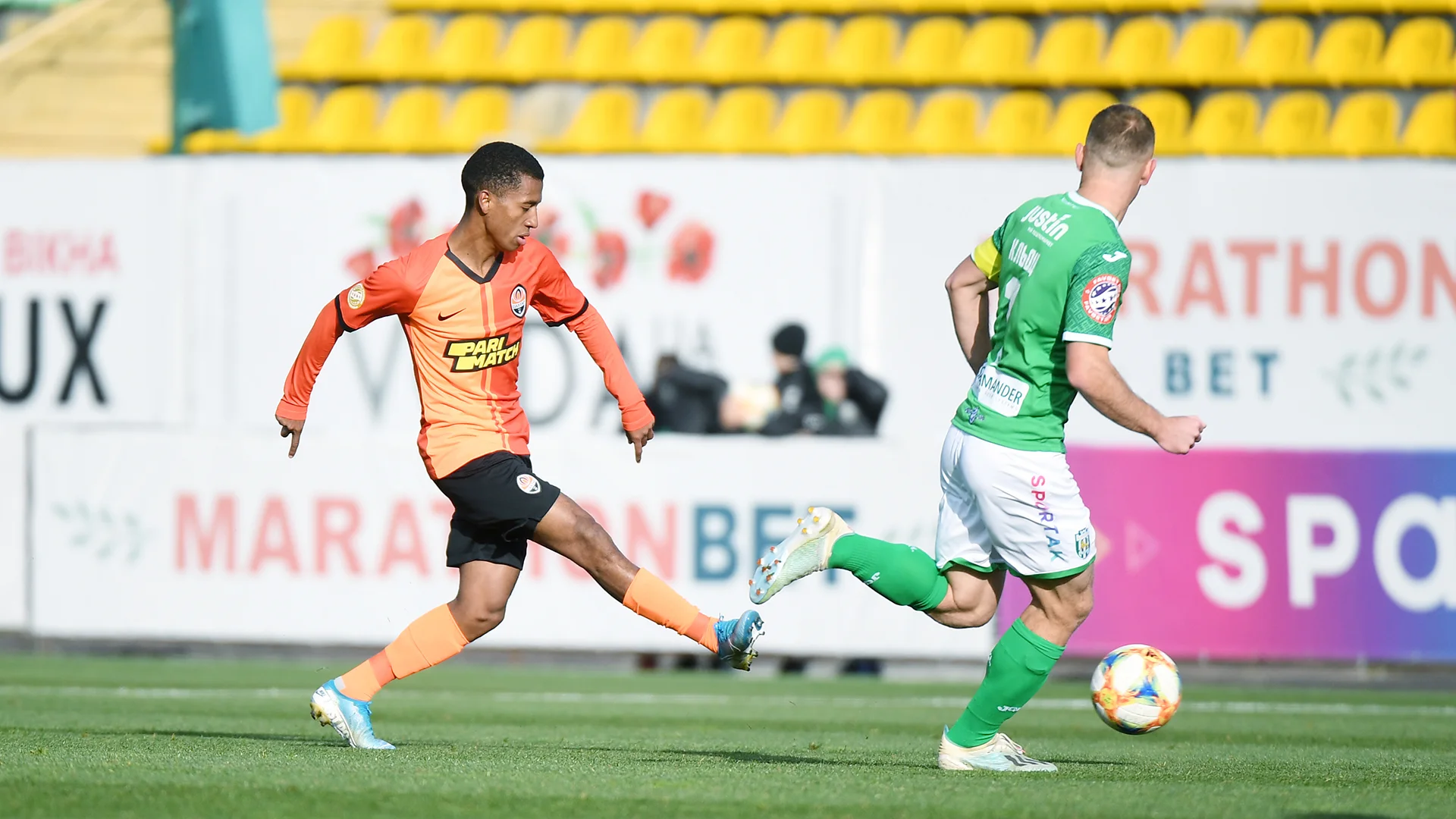 В первой четверти матча была прогнозируемая картина: гости владели инициативой и контролировали мяч. А вот с созданием моментов у донецких резервистов все складывалось не так гладко – не хватало тонкого последнего паса, массированная оборона Карпат не пропускала мяч в свою штрафную площадь.