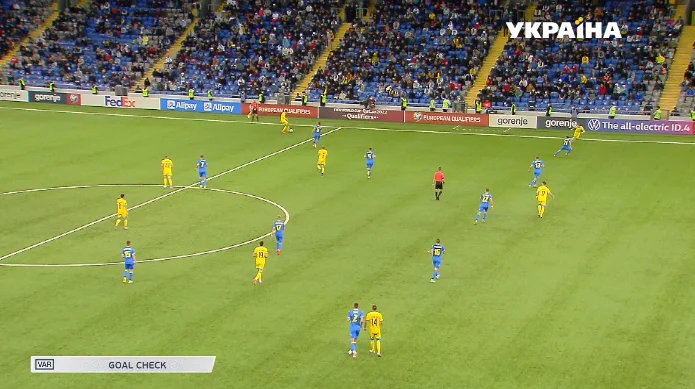Блестящий гол уже на 2 минуте. Троица центральных защитников покатала мячик, пока Забарный не бросил Караваева по правому флангу. Саша сразу же отдал в центр, а Яремчук, подбив себе грудью, с лета эффектно перебросил голкипера – шедевр форварда Бенфики. Такие забивают 3 на 100 попыток! А неплохой стартовый прессинг возле чужой штрафной – положительная агрессия с высокими перехватами в стиле Динамо Луческу по последним матчам УПЛ. Зинченко блокирует стартовый удар казахов на 15 минуте. А перед тем наш легионер из Манчестер Сити выдал нацеленную подачу на Миколенко. Немного точности не хватило Виталию. Но дальше динамовец выдал прорыв по левому флангу и прострел. Соболь на подборе накрывает в штрафной. Удар, рикошет, штанга и неудачная попытка Ярмоленко добить.