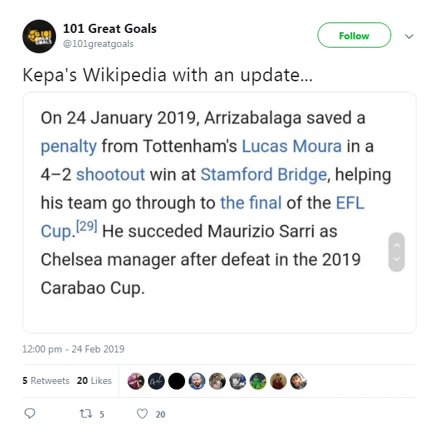 "Сменил Маурицио Сарри на посту главного тренера Челси после поражения в финале Кубка лиги-2019", – потроллили Кепу болельщики.