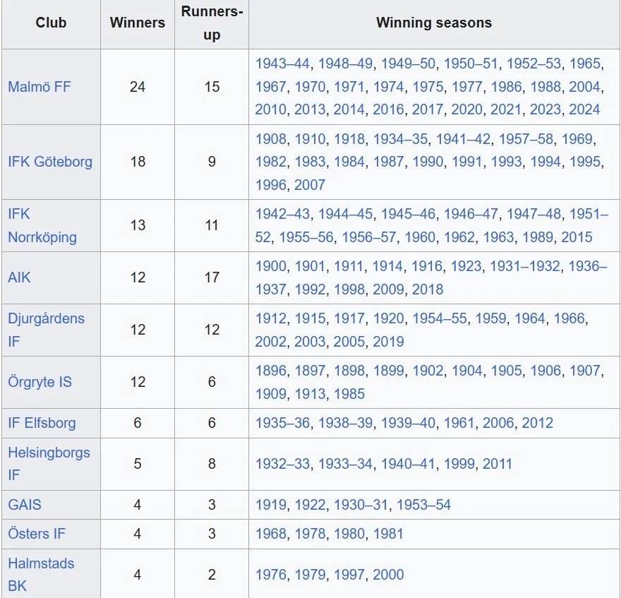 Найтитулованіші чемпіони Швеції