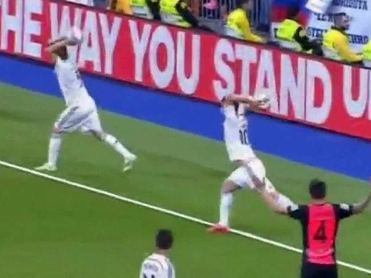 Фабиу Коэнтрау и Хамес получили по мячу и синхронно выполнили вброс из-за боковой линии.