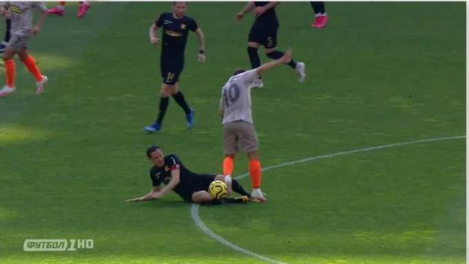 Роскошный момент Колоса на 13-й. Экс-форвард киевского Динамо Владимир Лысенко не заметил Степаненко на втором этаже, но Трубин в красивом прыжке выручил. А подавал штрафной другой экс-динамовец Андрей Богданов. Еще один жесткий фол в центре поля. Гавриш жестко играл и в мяч, и в Мораеса. Жуниор еще и вроде бы наступил на ногу капитана Коваливки. Досталось в другом эпизоде и Коноплянке. Приятно, что судья не разбрасывается карточками, поэтому пока без "горчичников". Дает бороться Копиевский. Было бы хорошо, если бы и в других матчах рефери не бегали проверять игровые стыки на повторах, каждый раз высасывая из пальца удаления имени VAR. Ну или хотя бы выработали одну стратегию судейства.