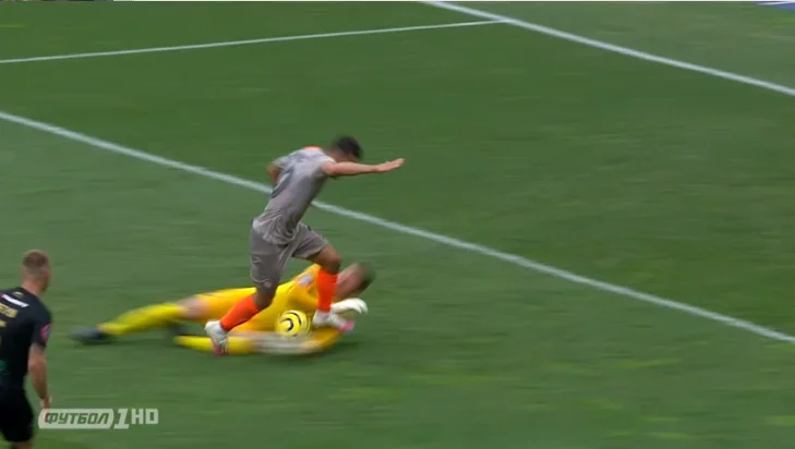 Уже дважды Волынцу оказывали помощь. Незаменимый вратарь Колоса, который вытащил уже не один матч в сезоне, все-таки продолжил игру, хотя раздавались крики о повреждении задней поверхности бедра. Каштру спрятал голову от игры своей команды. Таким расстроенным португальского тренера давно не видели. На 42-й минуте Колос позволил Тайсону увидеть ситуацию и без давления забросить на Додо. Мораес замыкал прострел последнего, но удар не получился. Еще и травмировался Жуниор, столкнувшись с соперником.
