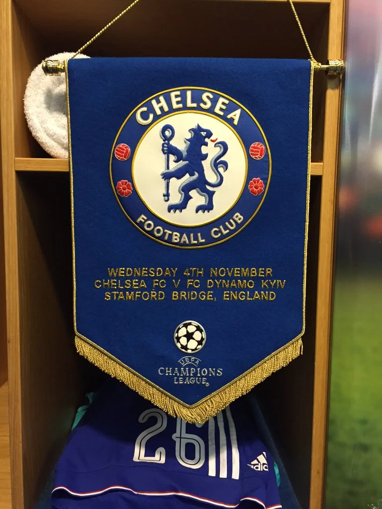 21:23. Раздевалка лондонского "Челси". Форма и вымпел ждут капитана команды Джона Терри.