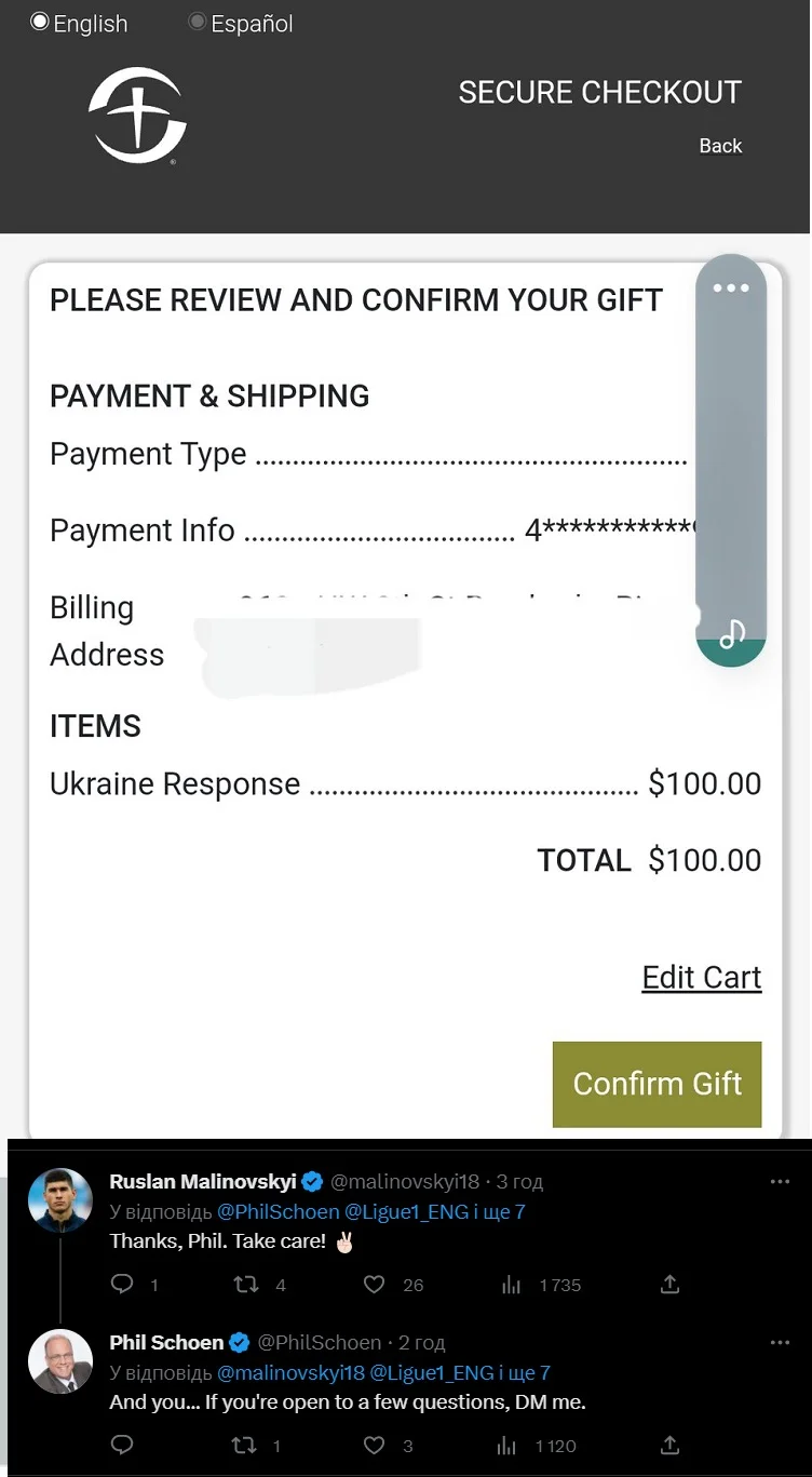 Однако Руслану слов было недостаточно. Наш земляк предоставил комментатору несколько ссылок на благотворительные фонды, а Шоэн перечислил в один из них 100 долларов. Об этом американец отчитался в соцсетях.