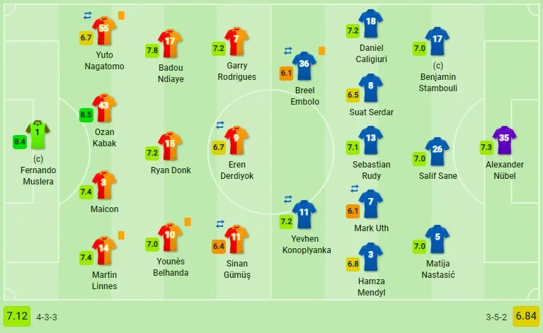 Доменико Тедеско после месяца экспериментов вернулся к игре с тремя центрбеками – схема 5-3-2 (3-5-2). Евгений Коноплянка против Галатасарая вышел в нападении в паре с Брелем Эмболо. Украинец впервые в сезоне получил столь атакующую роль в стартовом составе. В начале чемпионата наставник в такой формации выпускал впереди Ута, Бургшталлера и Эмболо, а с переходом на "back 4" Евгений исполнял роль правого вингера.