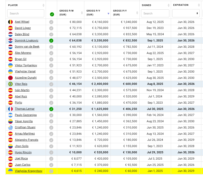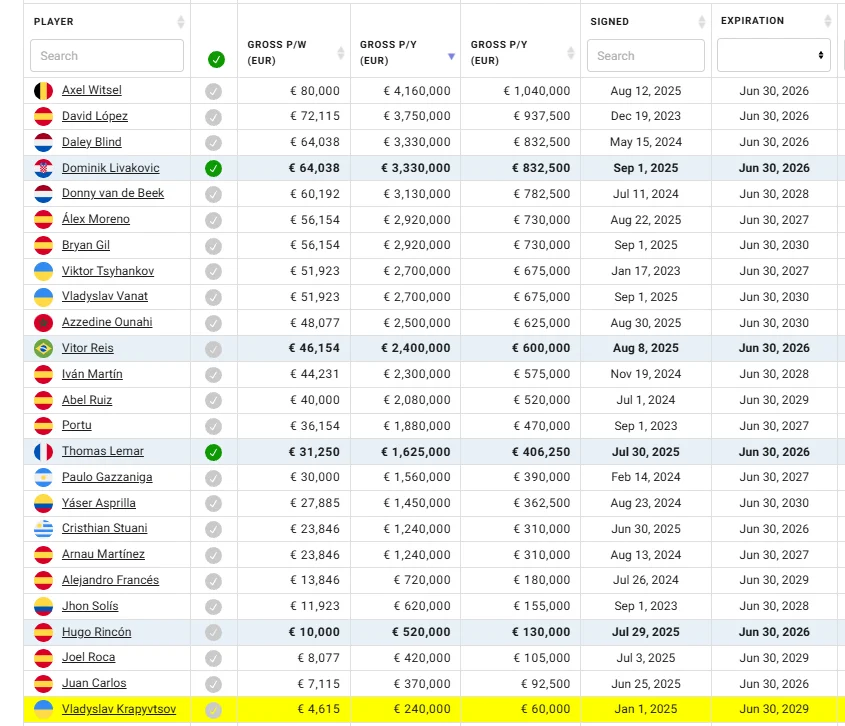 Крапивцов получает наименьшую зарплату в Жироне, Цыганков и Ванат вне топ-5