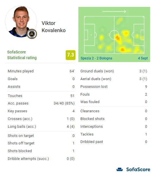Специя на своем поле принимала Болонью. В составе хозяев с первых минут снова вышел Виктор Коваленко, которого накануне расхвалил Лука Готти. К сожалению, "орлята" пропустили уже в дебюте: Медель из центра поля отдал длинную передачу на Арнаутовича за спины защитников, Марко сбежал от опеки, отыграл голкипера и пробил в уже пустые ворота. Защитник в падении пытался выбить и даже задел сферу, но спасти не смог. Спустя немного Коваленко ассистировал Нзоле в попытке сравнять – Скорупски потянул мяч с левого угла.