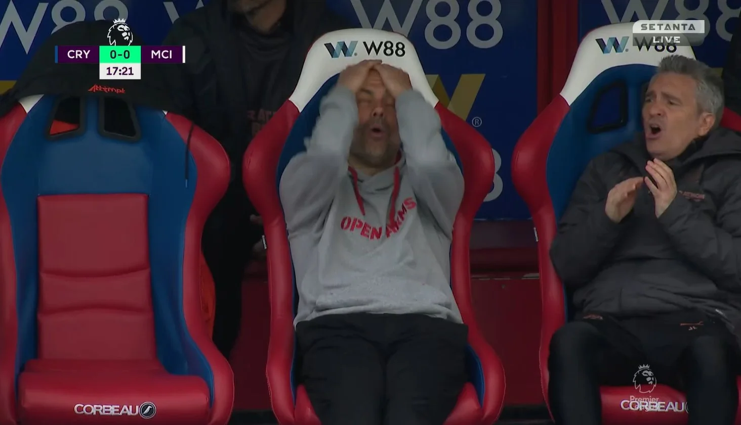 Лидером атак пытался стать Стерлинг, но его удары вызывали лишь смех. "Успехи" Рахима можно изучать по реакции Гвардиолы. Удар на трибуны Пеп встретил фейспалмом, а после очередного упущенного момента схватился за голову.