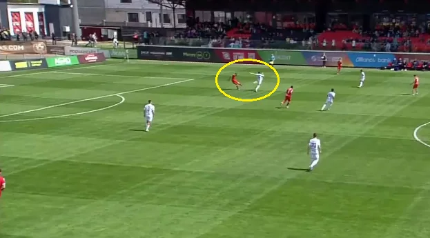 На 33-й же минуте запахло жареным. Редушко попытался обыграть двоих и потерял мяч, после чего Араухо выполнил вынос. Захарченко не смог его перехватить – Мендоса легко оттер его корпусом и побежал на рандеву с Нещеретом. 3:1!