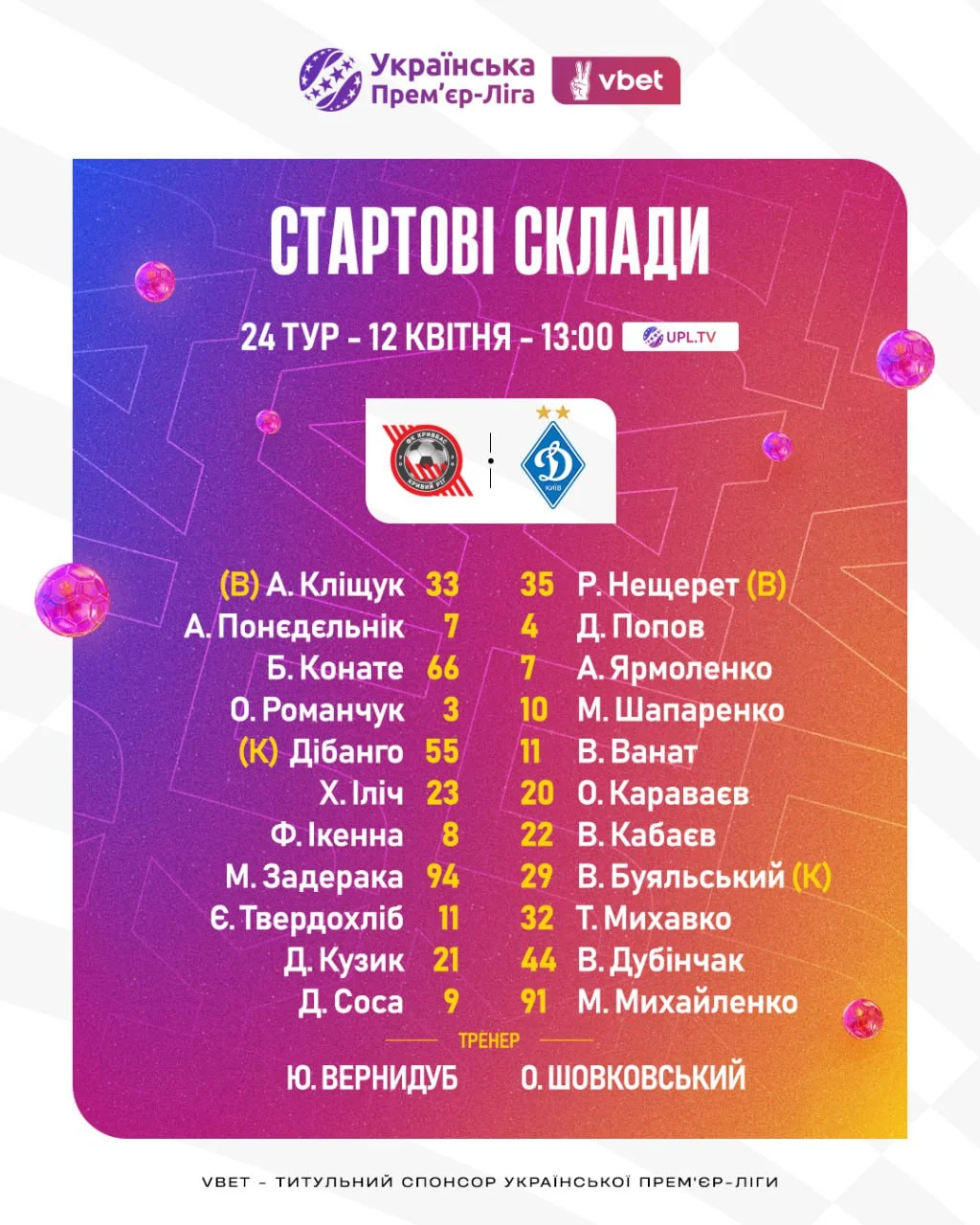 Кривбасс – Динамо: стартовые составы и онлайн-трансляция матча УПЛ 12 04 2025