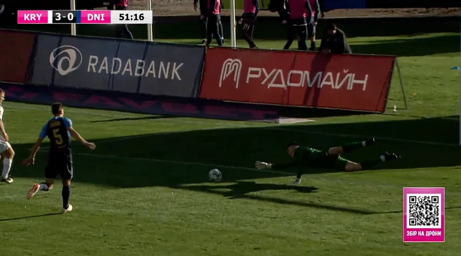 Тем не менее, уже на 11-й минуте ему пришлось вынимать сферу из сетки. Илич со своей половины исполнил передачу низом, разрезав две оборонительные линии Днепра-1 и организовав выход 2-в-1 против Кинарейкина. Кузык покатил на Кожушка, а тот пробил в пустые – 1:0!