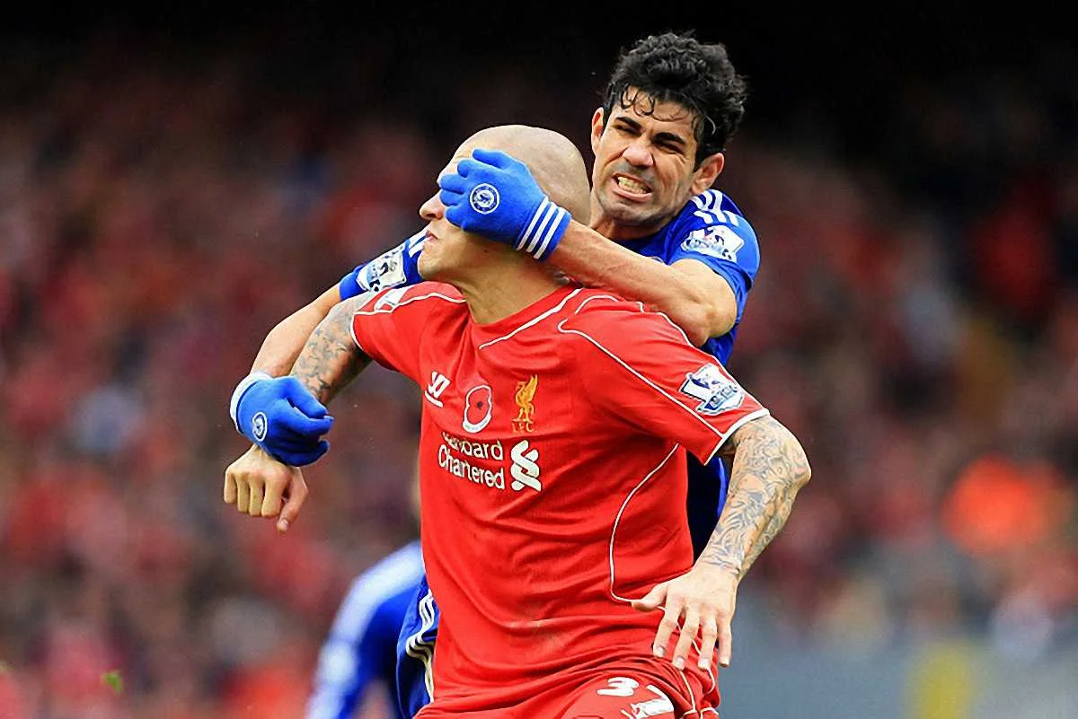 Прием №4. Роль жертвы. Один из немногих оппонентов, кто дал достойный отпор Косте - это словацкий "столб" обороны "Ливерпуля" Мартин Шкртел.